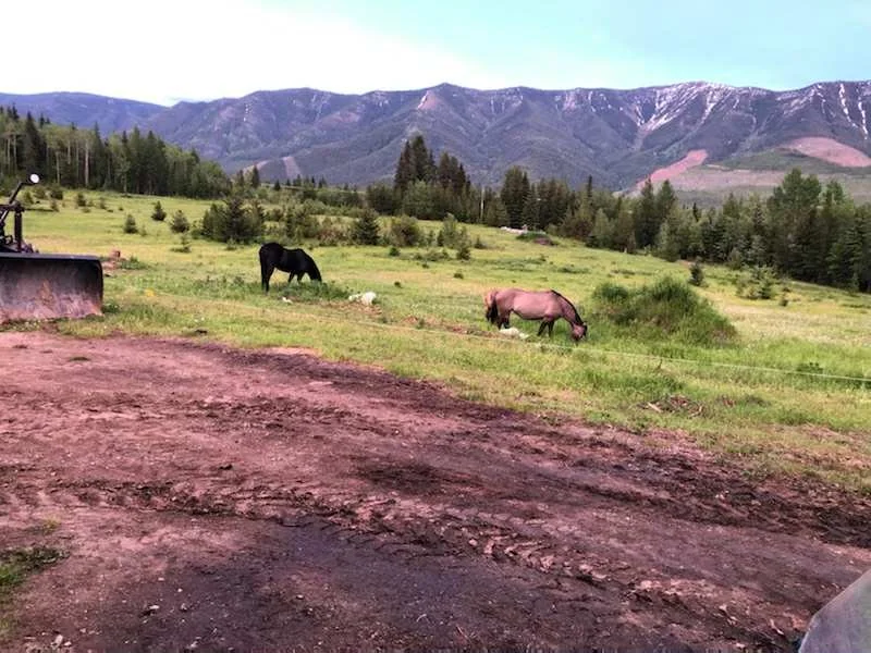 The property is surrounded by rich forestland with abundant timber, offering both beauty and practical value. Mature larch and pine trees frame the landscape, and while the owner selectively removes deadwood for firewood or milling, the majority of the forest remains untouched and naturally preserved.